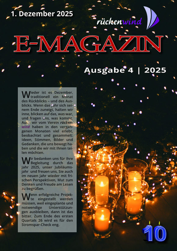 Am 1. Dezember erscheint das neue E-Magazin des Vereins rückenwind. Verschiedene interessante Themen findet man in diesem online-Magazin: