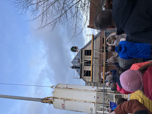 In seiner Ansprache zeigte sich Pastor Weinz erfreut darüber, dass das Bauprojekt nach zehn Jahren der Planung nun so gut voranschreitet. Gerade in Zeiten, in denen viele Kirchengemeinden sich der Herausforderung stellen müssen, nicht mehr alle Gebäude erhalten oder energetisch sanieren zu können, sei dieses Vorhaben ein ermutigendes Zeichen.