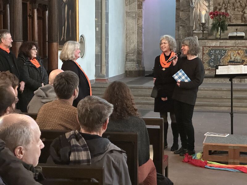 Der Gottesdienst, der - wie könnte es anders sein - sehr musikalisch geprägt war, wurde eingeleitet durch den Posaunenchor unter Leitung von Sven Packeiser und auch Heike Kieckhöfel trug als Solistin auf der Oboe das populäre Stück „Gabriel‘s Oboe“ von Ennio Morricone vor; begleitet wurde sie dabei von der Propsteikantorin Pia Kühne aus Salzgitter. Und natürlich war der große Gospelchor „True words“, ein letztes Mal unter der Leitung von Heike Kieckhöfel, an zentraler Stelle mehrfach zu hören und überzeugte durch Präsenz und Präzision. Im Rahmen der Entpflichtung sprachen die Braunschweiger Pastorin Christine Stelling und der Rhauderfehner Superintendent Thomas Kersten der scheidenden Propsteikantorin ein Segenswort zu und wirkten als Assistierende im Gottesdienst mit.