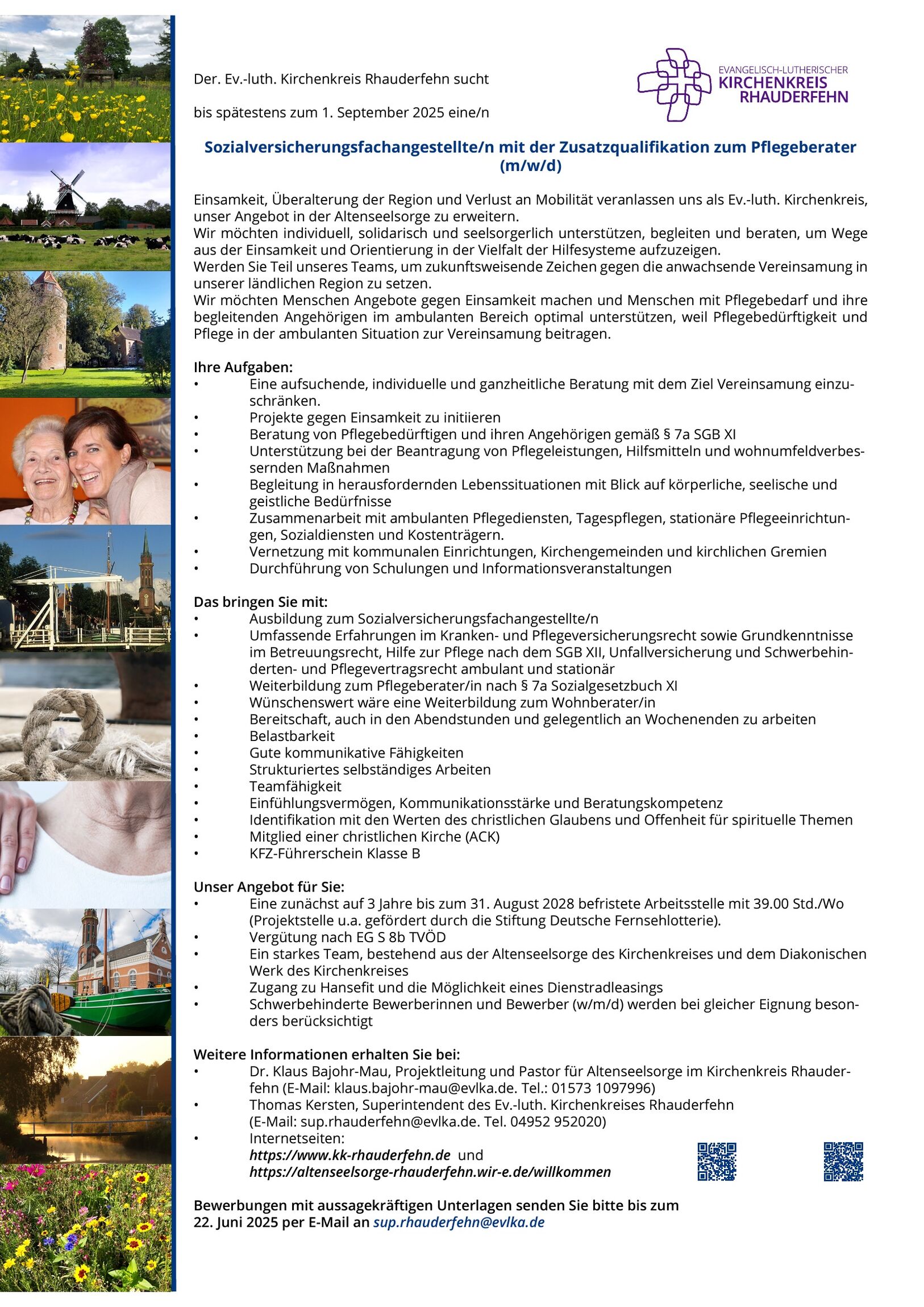 Das Team der Altenseelsorge im Kirchenkreis Rhauderfehn sucht dringend Verstärkung. Spätestens zum 1. September soll die oben beschriebene Stelle besetzt werden.