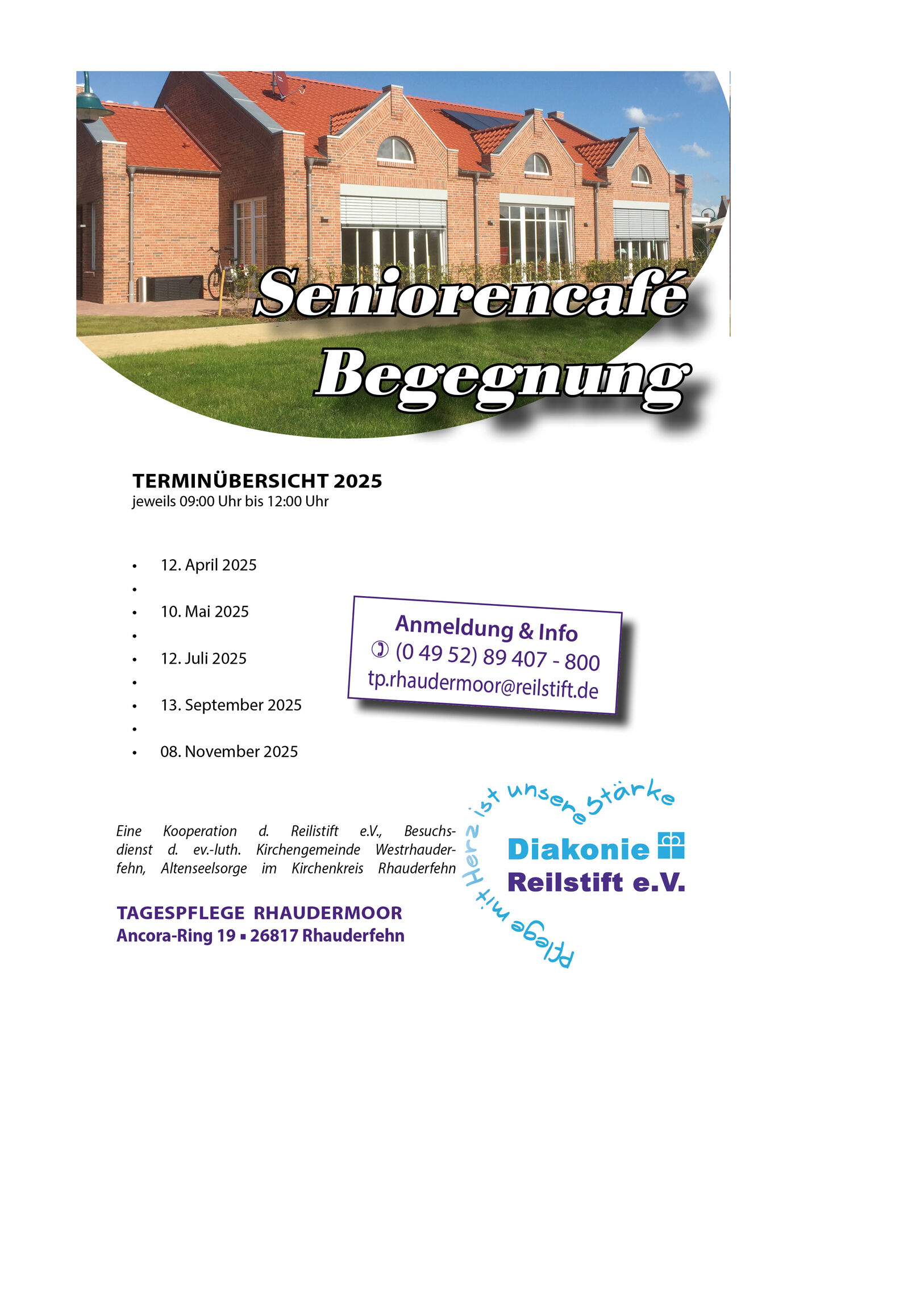 Gemeinsam laden die Altenseelsorge, die Ev. Kirchengemeinde Westrhauderfehn und das Reilstift alle Seniorinnen und Senioren – mit oder ohne Pflegebedarf – sowie pflegende Angehörige herzlich ein, einen entspannten Vormittag miteinander zu verbringen.