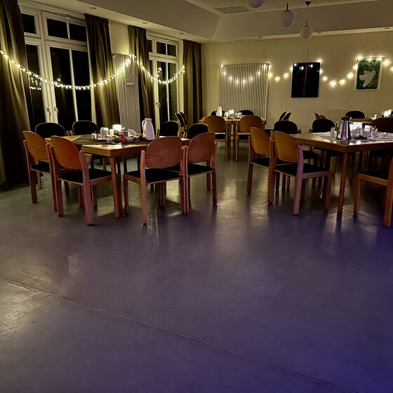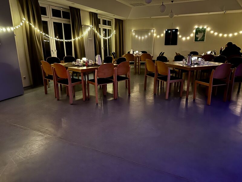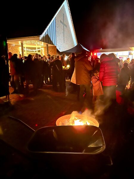 Nach dem musikalischen Teil verlagerte sich das Geschehen ins Gemeindehaus und auf die Freifläche davor. Dort bot der ISSWas-Wagen frisch gemachte Pommes frites an. Daneben gab es Brat- und Currywurst, sodass für das leibliche Wohl bestens gesorgt war. Im Gemeindesaal selbst lockten duftende Waffeln, Tee und Kaffee in den liebevoll geschmückten Gemeindesaal, während draußen frisch gezapftes Bier und Glühwein, bei den vielen Besucherinnen und Besuchern großen Anklang fanden. Ein großes Dankeschön an alle, die dieses Fest vorbereitet und durchgeführt haben – Da ist man als Gast und Gemeindemitglied gerne dabei!