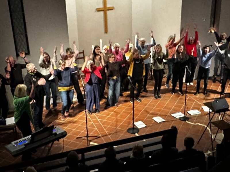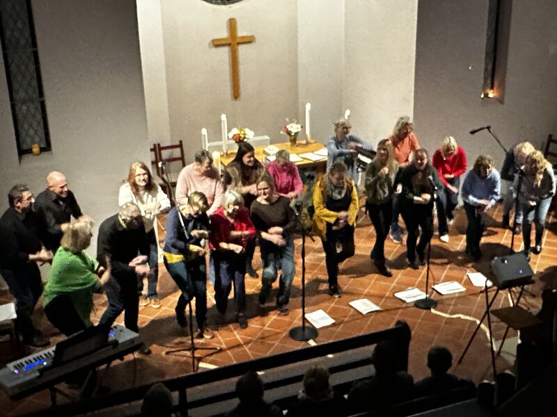 Zu hören waren unter anderem Stücke wie „Sag doch endlich ja“ und „Der Segen Gottes möge dich umarmen“, die das Publikum sichtlich berührten. Die kleine, bis auf den letzten Platz gefüllte Kirche bot eine fröhliche und zugleich intime Atmosphäre. Im Kerzenschein und mit einem warm ausgeleuchteten Altarraum wurde der Chor stimmungsvoll in Szene gesetzt.