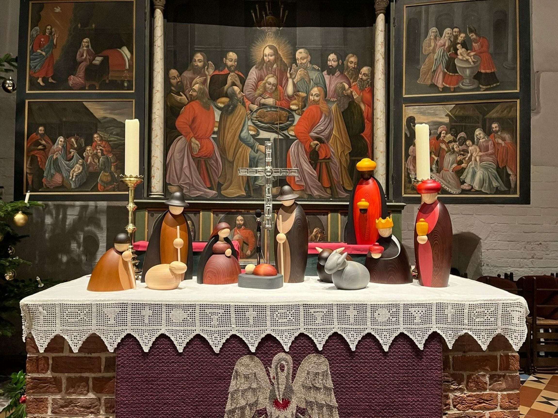 Die ganze Krippenszene wurde über einige Jahre hin von der kleinen Holzwerkstatt Köhler in Thüringen angefertigt. Mit großer Freude wurden sie von der ganzen Gemeinde bestaunt und zum Thema in den Predigten gemacht.