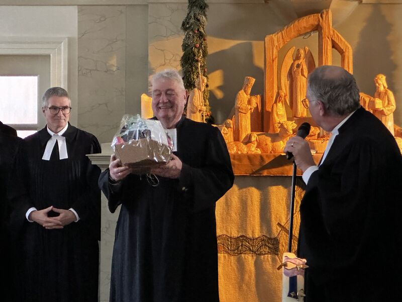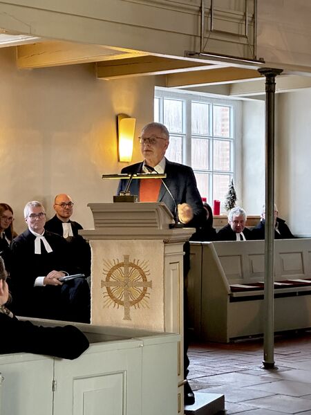 Viele Weggefährten aus der Dienstgemeinschaft waren gekommen, um ihrem Kollegen die Ehre zu erweisen. In der Predigt griff Martin Sundermann einen Abschnitt aus dem 1. Korintherbrief (1 Kor 1,26–29) auf. Paulus schreibt dort an eine Gemeinde, die stark von Statusdenken, Weisheit und Macht geprägt ist. Dem setzt er Gottes Handeln entgegen: Gott erwählt nicht die Starken und Einflussreichen, sondern oft die Schwachen, Unscheinbaren und Verachteten – damit deutlich wird, dass Erlösung nicht menschliche Leistung, sondern reine Gnade ist.