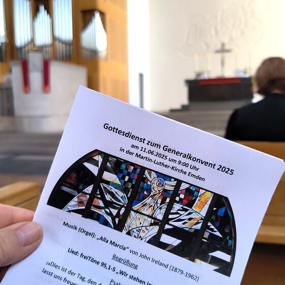 Emden. Am Mittwoch, 11. Juni, fand in Emden der diesjährige Generalkonvent des Ev.-luth. Sprengels Ostfriesland-Ems statt, zu dem alle Pastorinnen und Pastoren sowie erstmalig auch die Ephoralsekretärinnen eingeladen waren. Der Konventstag begann mit einem gemeinsamen Abendmahlsgottesdienst in der Emdener Martin-Luther Kirche. Besondere Elemente waren die Ehrung der Ordinationsjubilare und das Gedenken der Verstorbenen.Regionalbischöfin Sabine Schiermeyer beleuchtete in ihrer Predigt Jesus berühmten Satz: Gebt dem Kaiser, was dem Kaiser gehört, und Gott, was Gott gehört. „Wir Christinnen und Christen gehören keiner Regierung, keinem anderen Menschen und auch nicht allein uns selbst. Wir gehören Gott. Wir gehören einer liebevollen Güte, die von Anfang an den Schutz der Schwächeren anmahnt und eine Gerechtigkeit einspricht, die unsere menschliche inspirieren und hinter sich herziehen möchte“, so Schiermeyer.
