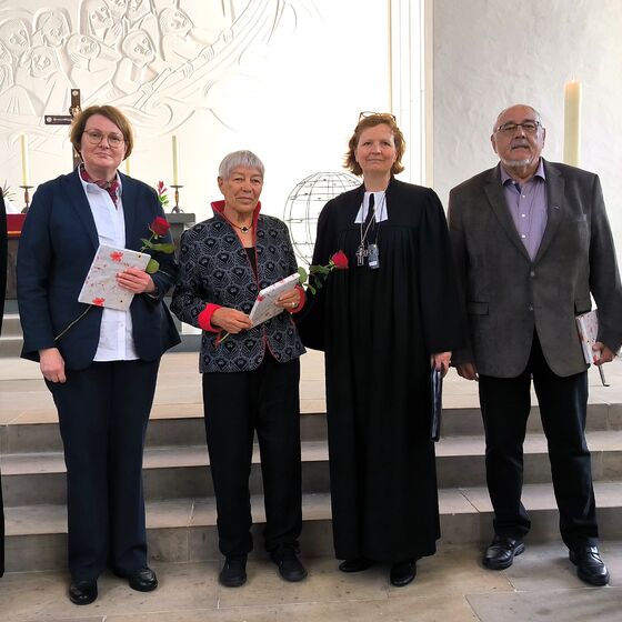 Verabschiedet aus ihrem Dienst als theologische Referentin und Pressesprecherin des Sprengels wurde Dr. Hannegreth Grundmann. Sie war 15 Jahre für die Presse- und Öffentlichkeitsarbeit im Nordwesten von den Ostfriesischen Inseln bis zur westfälischen Grenze zuständig. Sie wollte immer zeigen und würdigen, was an der Basis an vielfältiger Arbeit geschieht: Ihr Markenzeichen waren die Good News. Sie war in Kirche und Öffentlichkeit bestens vernetzt und bildete die Scharnierfunktion zu den Kirchenkreisen und zur Landeskirche. Die Regionalbischöfin dankte Grundmann für ihr Tun und wünschte ihr für die nun beginnende Arbeit als Gemeindepastorin in Hesel alles Gute und Gottes Segen.