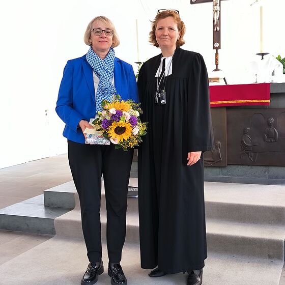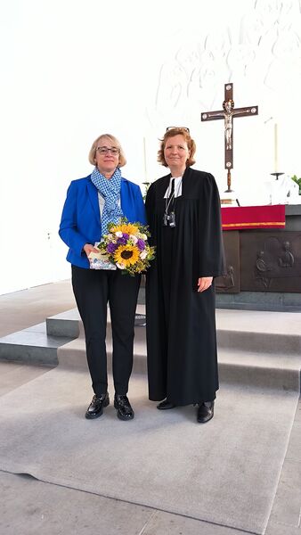 Regionalbischöfin Sabine Schiermeyer verabschiedet Dr, Hannegreth Grundmann aus Ihrem Dienst als Pressesprecherin beim Generalkonvent in der Martin-Luther-Kirche Emden.