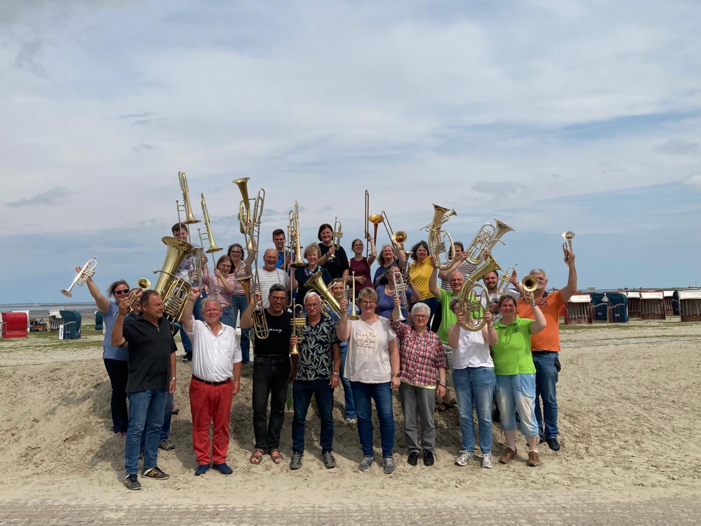 Aus dem Kirchenkreis Rhauderfehn waren vier Bläser vertreten: drei aus Holterfehn sowie Kirchenkreiskantorin Heike Kieckhöfel. Für alle Musikerinnen und Musiker war es eine besondere Erfahrung, gemeinsam mit so vielen Bläserinnen und Bläsern aus unterschiedlichen Regionen zu musizieren, den Gottesdienst zu gestalten und den Urlauber:innen an der Küste eine klangvolle Freude zu bereiten.