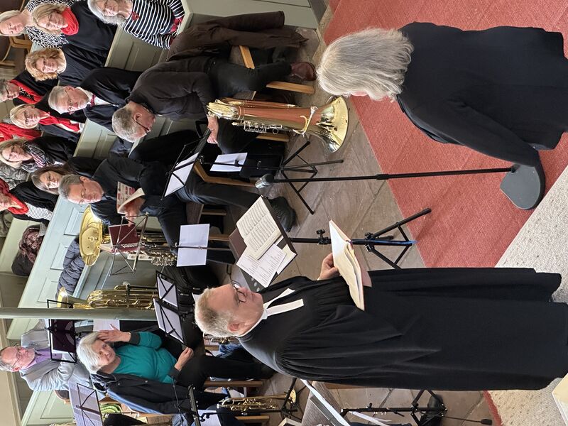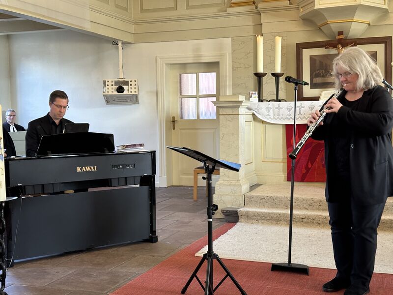 Der Gottesdienst war geprägt von beeindruckenden musikalischen Darbietungen: Der Potshauser Gospelchor unter Leitung von Ulrike Sundermann überzeugte mit rhythmischer Kirchenmusik , Heike Kieckhöfel selbst berührte die Gemeinde mit ihrem Oboen-Solo von Ennio Morricones „La Califfa“, begleitet von Kirchenmusikdirektor Johannes Geßner am Klavier. Ein kraftvolles Posaunenensemble, bestehend aus Musikerinnen und Musikern verschiedener Posaunenchöre des Kirchenkreises, setzte strahlende Akzente unter der Leitung von Heike Kieckhöfel und Olaf Löcken. An der Orgel musizierten Geßner und Kieckhöfel abwechselnd und verliehen dem Gottesdienst einen festlichen Rahmen.