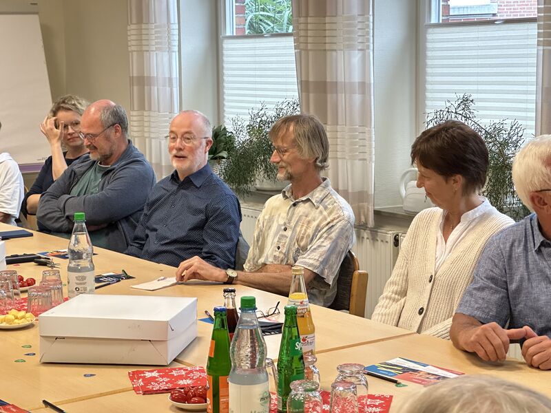 Ein weiteres Thema war das neue Gesangbuch, das ab Advent 2028 erscheinen soll. Daran arbeiten aus jeder Landeskirche jeweils ein Kirchenmusiker/-in und ein Theologe mit. Das neue Buch wird rund 500 Lieder enthalten und für die gesamte EKD verbindlich sein, nur bei beim Anhang gibt es eine Nord- und eine Südausgabe. Ergänzend entsteht eine digitale Datenbank mit etwa 2000 Liedern. Auch spezielle Ausgaben sind geplant, etwa eine Bandausgabe (die sogenannte „Westfalen-Ausgabe“), ein Klavierbuch, ein Posaunenbuch sowie ein Chorbuch. Die Kirchengemeinde Steenfelde wird Probeexemplare erhalten, um Rückmeldungen zu möglichen Anpassungen – etwa bei Tonarten oder Textfassungen – an die EKD weiterzugeben.
