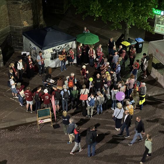 Unsere Unterkunft liegt ideal: direkt neben der Marktkirche, dem Zentrum vieler Veranstaltungen in der Innenstadt. Dort herrschte bereits am Nachmittag geschäftiges Treiben. Zahlreiche Helferinnen und Helfer bereiteten den „Abend der Begegnung“ vor – ein großer Willkommensmoment für bis zu 150.000 Gäste aus dem In- und Ausland.