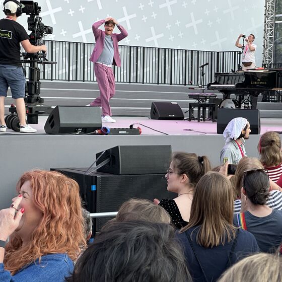 Den Abschluss dieses ereignisreichen Tages bildete ein zweistündiges Bühnenprogramm auf dem Opernplatz mit Bodo Wartke. Rund 25.000 Zuhörerinnen und Zuhörer ließen sich von seiner menschenfreundlichen Musik, seinem Wortwitz und der Spielfreude mitreißen. Ein Abend voller Leichtigkeit, Sprachkunst und guter Stimmung – gekrönt von einem kühlen Getränk unter dem weiten und sommerlich anmutenden Himmel.