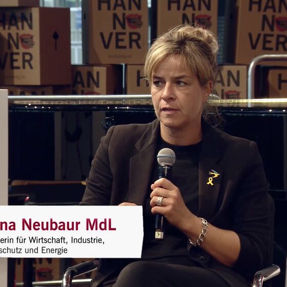 Nach einem einführenden Impuls durch Mona Neubaur MdL, Ministerin für Wirtschaft, Industrie, Klimaschutz und Energie des Landes Nordrhein-Westfalen, entwickelte sich eine engagierte Debatte mit folgenden Teilnehmern auf dem Podium: