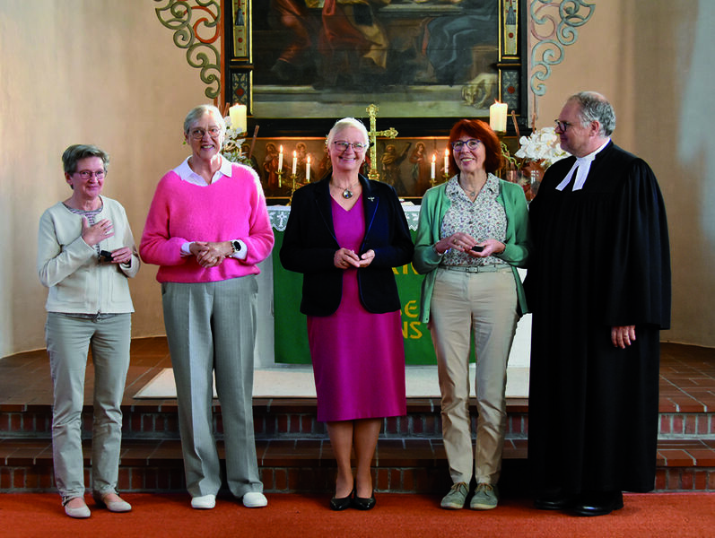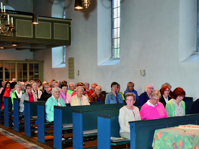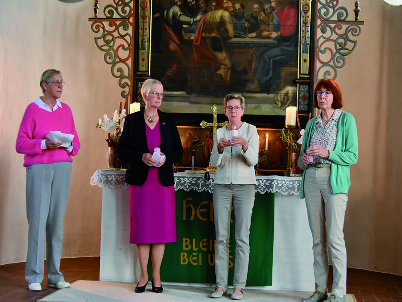 In einem persönlichen Rückblick ließen die vier Frauen noch einmal besondere Momente, Ausflüge und Vorträge an den Gottesdienstteilnehmerinnen vorbeiziehen. Gesa Goudschaal begeisterte auf dem E-Piano und die Frauen stimmten in stimmungsvolle plattdeutsche Gesänge ein.