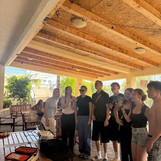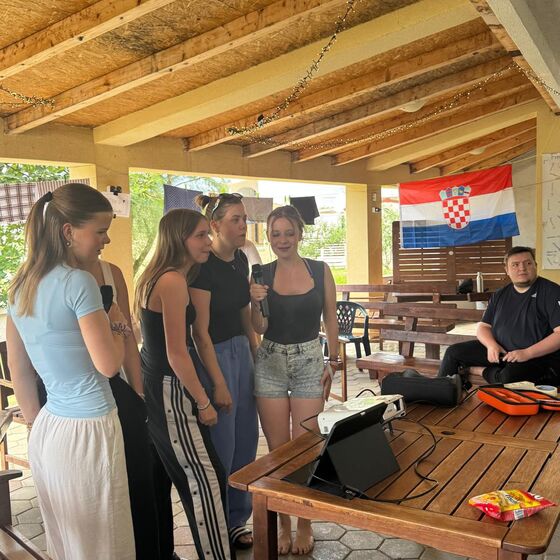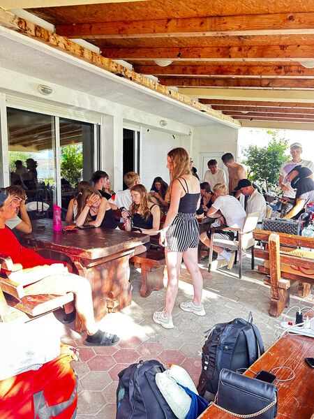 Untergebracht ist die Gruppe in einem Haus, das direkt am Meer liegt. Nach der langen Reise steht heute zunächst ein entspannter Tag am Strand auf dem Programm, bevor es morgen zu einem Ausflug in die historische Stadt Zadar geht.