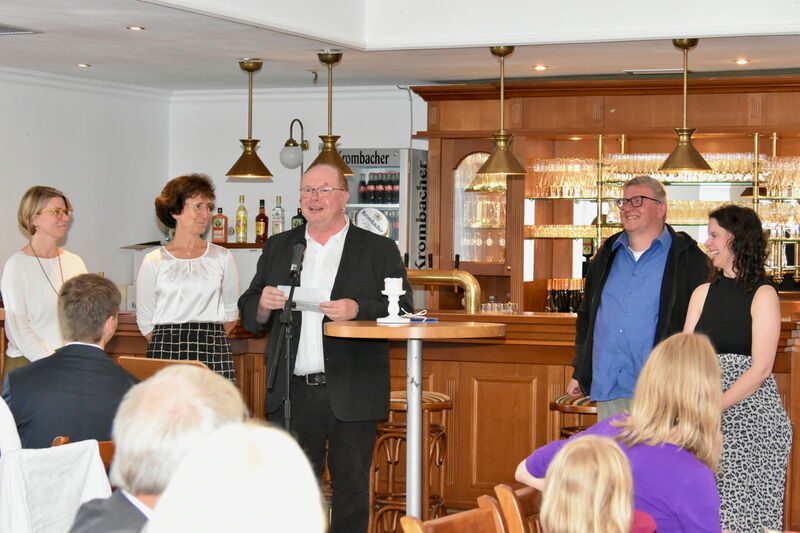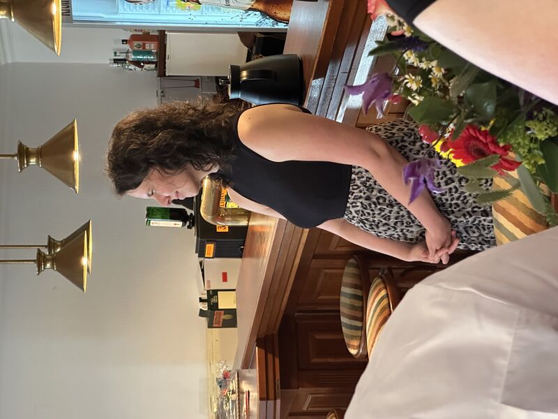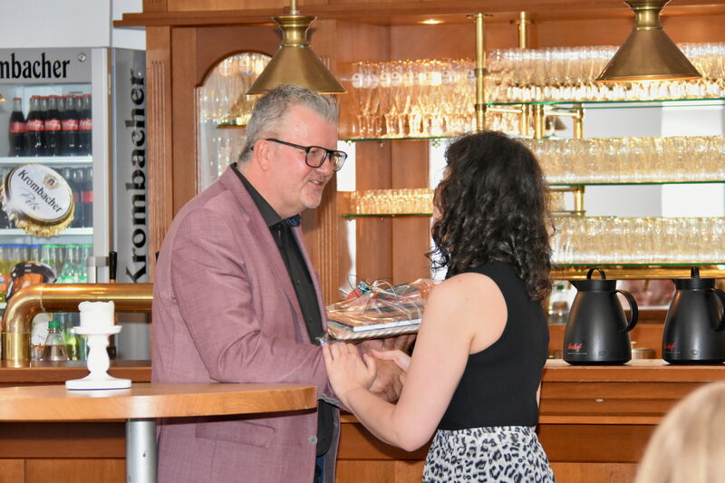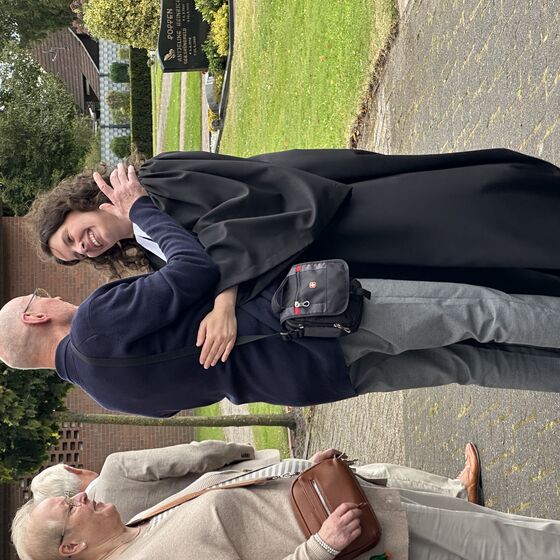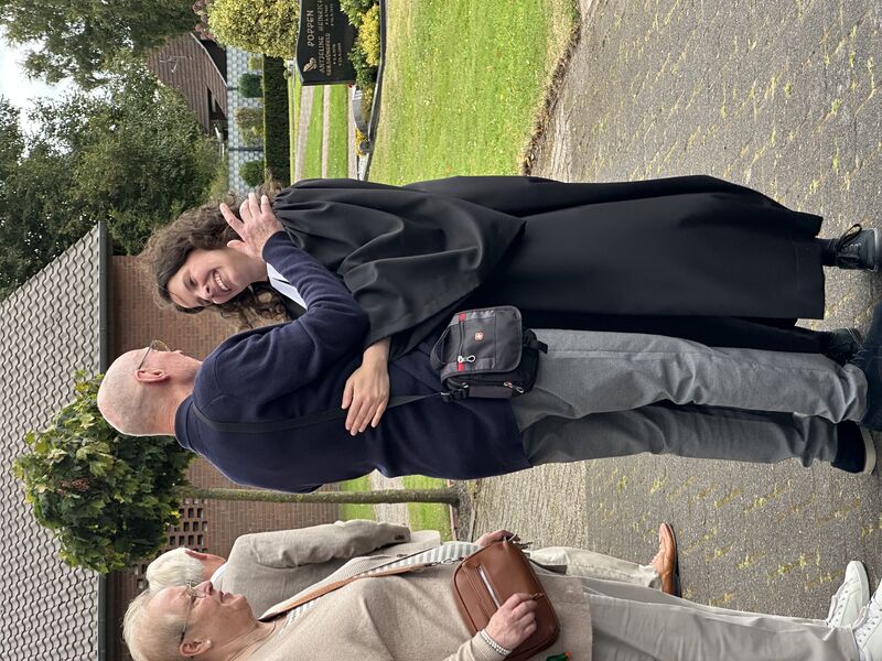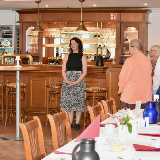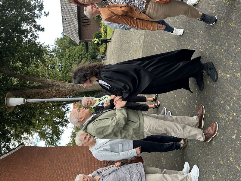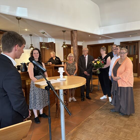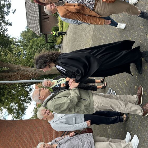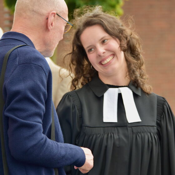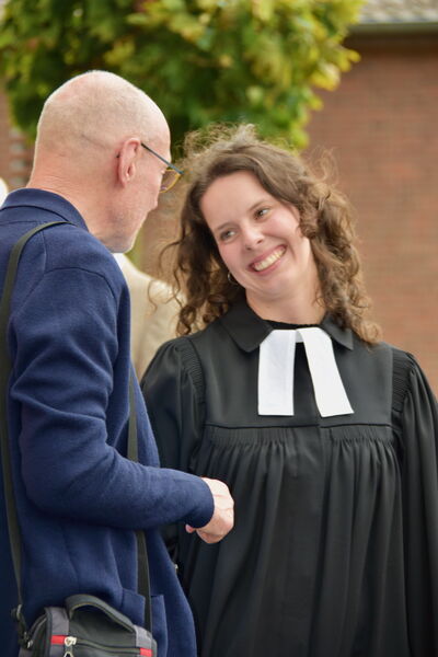 Im Anschluss an den Gottesdienst fand ein Empfang im „Gasthuus up Dörp“ statt. Dort überbrachten Vertreterinnen und Vertreter aus Kirche, Politik und Vereinen Grußworte und Geschenke. Bürgermeister Theo Douwes aus Westoverledingen betonte die Bedeutung einer besetzten Pfarrstelle für die rund 5000 Einwohner zählende Gemeinde. Ortsbürgermeister Karl-Heinz Jesionnek ermutigte die junge Pastorin Besuche in der Gemeinde zu absolvieren. Von kirchlicher Seite überreichten Superintendent Kersten sowie Mitglieder der Kirchenkreissynode und des Kirchenvorstands verschiedene Präsente. Auch Vertreter des örtlichen Sportvereins und befreundete Geistliche aus dem Kollegium und aus der Ausbildungszeit richteten ihre Grüße aus.
