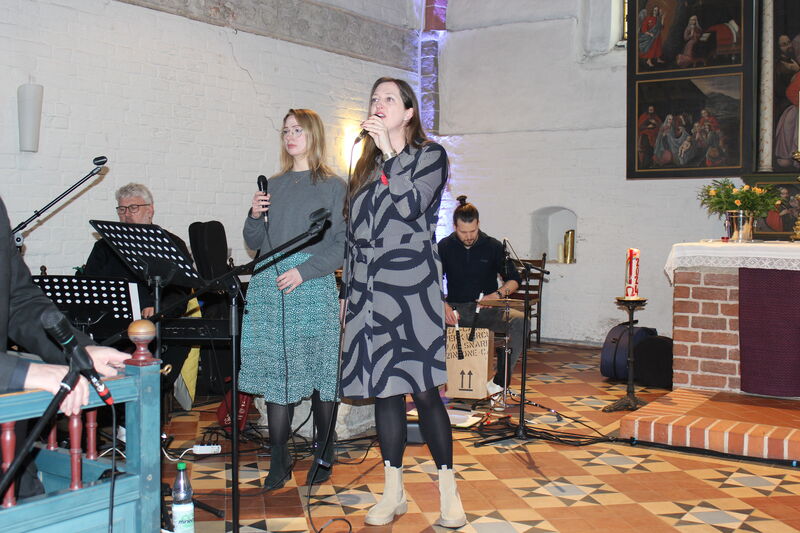 Vorbereitet von einem ganzen Team startete der Gottesdienst mit einer kurzen Einführung von Pastorin Angela Kirschstein. „Heart of the community“ überschrieb sie das heutige Experiment und das war in der Kirche vertreten: Das Herz der Gemeinde, bunt, vielfältig, lebendig und nachdenklich – alle Elemente hatten ihren Platz. Und sie hatten auch ihre jeweilige musikalische Entsprechung mit Band, Posaunenchor, Kinderchor, Kirchenchor, Gospelchor oder auch Piano solo.