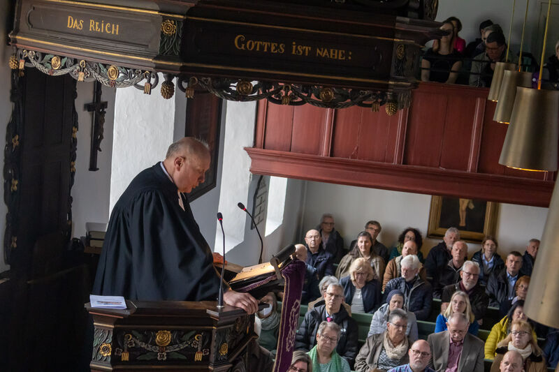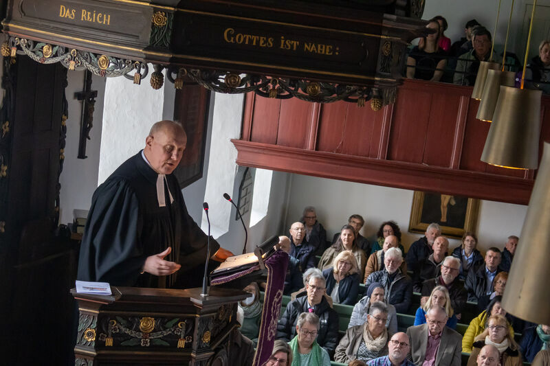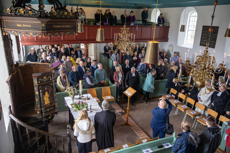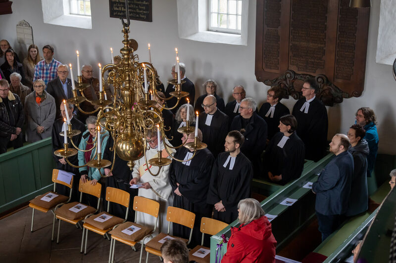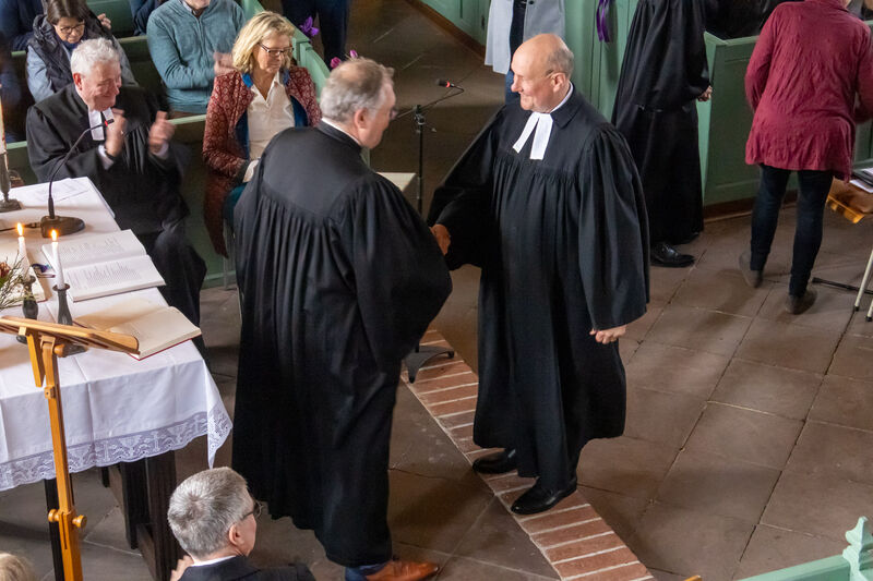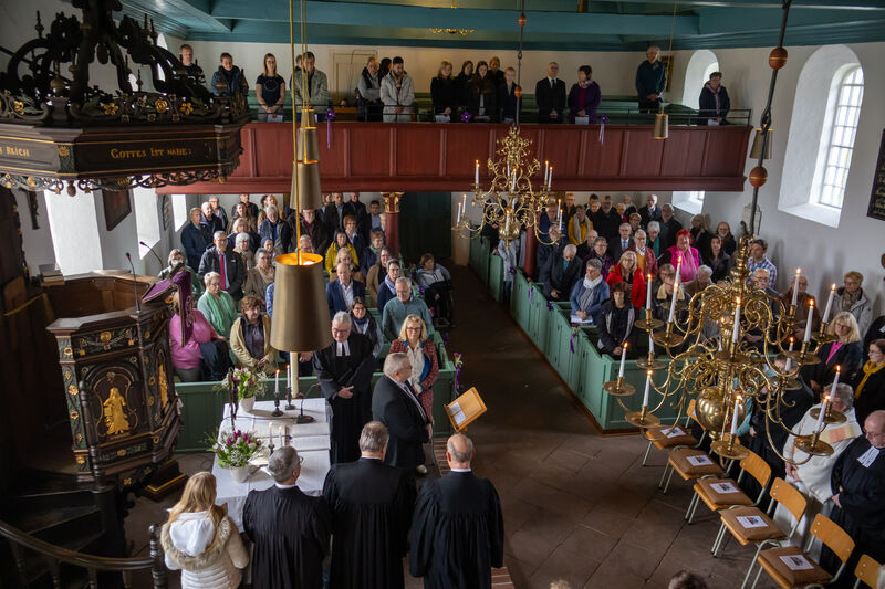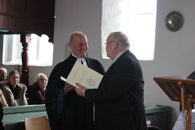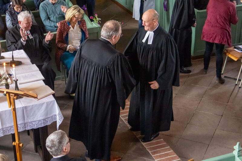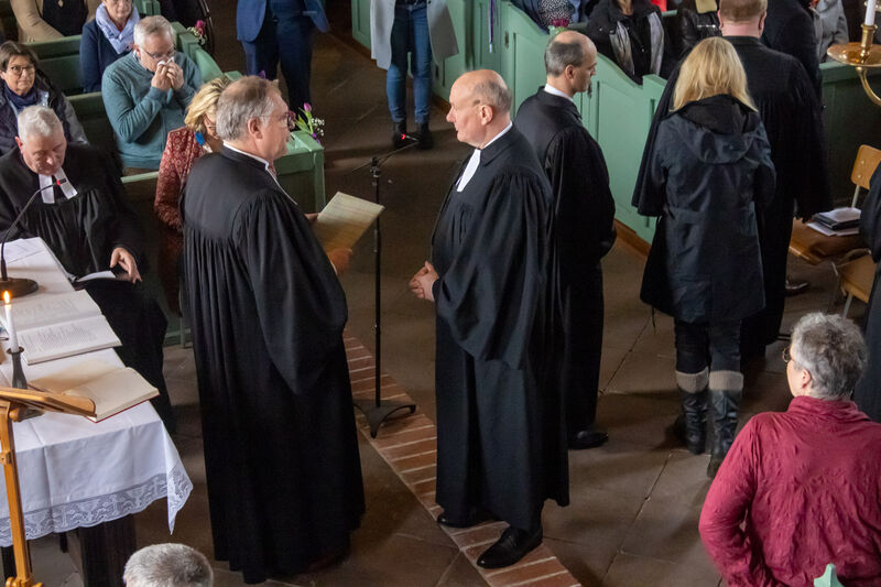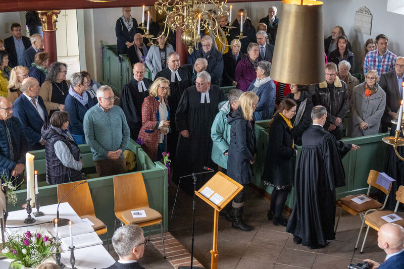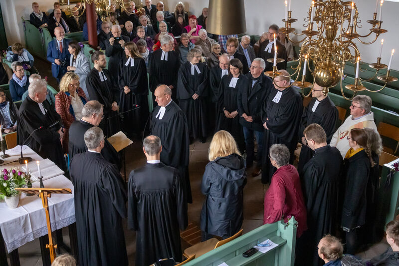 Und auch der Anlass des Gottesdienstes war ein besonderer: Der Rhauder Pastor Hartmut Kutsche wurde nach insgesamt 38 Jahren im Pfarramt, davon 23 Jahre als Pastor in Rhaude, in den Ruhestand verabschiedet. Zu diesem Anlass hatten sich viele Mitglieder der Gemeinde, Weggefährten von nah und fern und viele Pastorinnen und Pastoren aus dem gesamten Kirchenkreis in der voll besetzten Rhauder Kirche eingefunden.