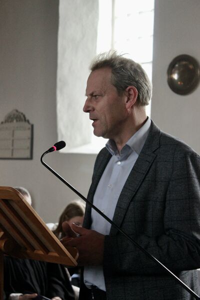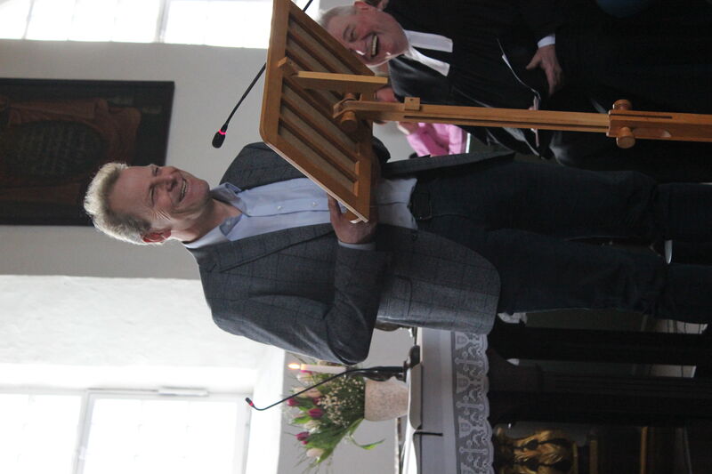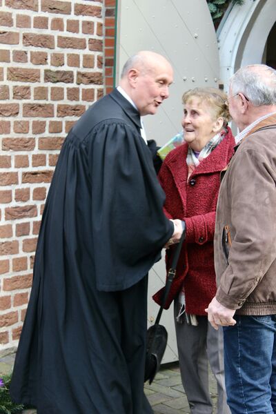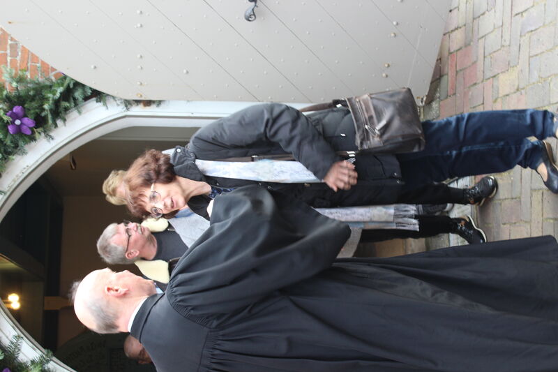 Was dann folgte waren eine Reihe ganz unterschiedlicher Grußworte: Bürgermeister Geert Müller dankte für die stets gute Zusammenarbeit (auf platt), Dorothea Dluschkowski bedankte sich für die Kooperation auf Augenhöhe (in Versform), Petra Prins erinnerte an eine sehr persönliche seelsorgerliche Begegnung bei einer Sterbebegleitung (sehr emotional) und Martin Sundermann erinnerte mit kabarettistischer Note humorvoll an die eine oder andere Situation im pfarramtlichen Leben von Hartmut Kutsche. Die Gemeinde zollte immer wieder begeistert Applaus und fühlte sich trotz des Abschiedes von ihrem Pastor dabei dennoch gut unterhalten.