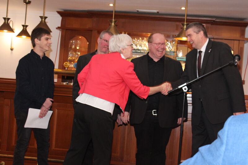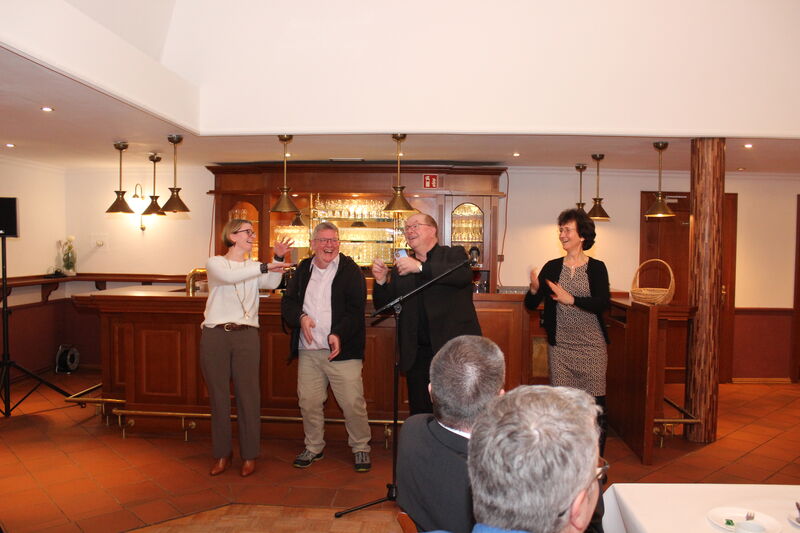 Einen kulturellen Beitrag leisteten die Kolleginnen und Kollegen aus den Nachbargemeinden: Nur kurz angesungene Udo Jürgens Titel wurden mit allen Gästen vervollständigt; durch Pastor Heino Dirks launig moderiert wurde dann ein Geschenk – Gutschein für Veranstaltungen des Kulturkreises Papenburg – überreicht.