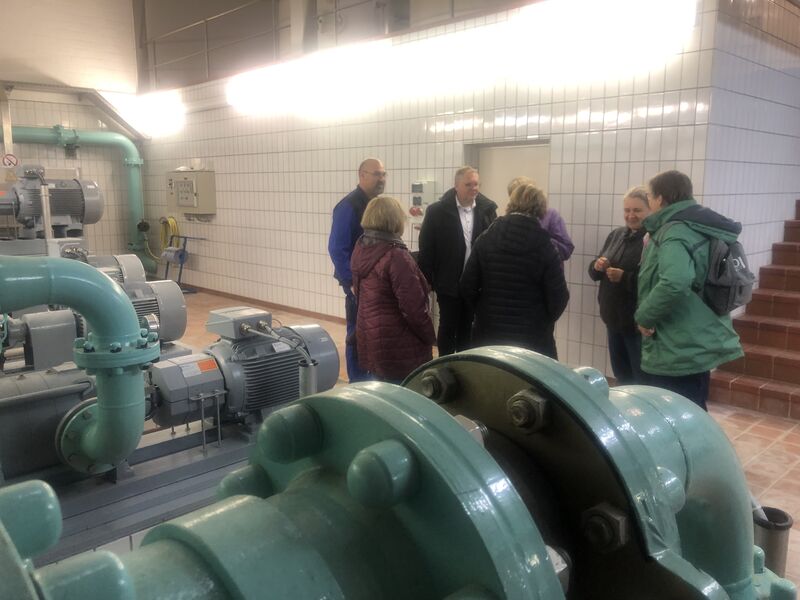 Das Wasserwerk Collinghorst fördert aus fünf Brunnen Grundwasser in rund 120 Metern Tiefe und bereitet dieses in einem mehrstufigen Prozess zu hochwertigem Trinkwasser auf. Bei einem Rundgang durch die verschiedenen Stationen des Wasserwerks, von der Belüftung über die Filterstufen bis hin zu den Reinwasserbehältern, konnten die Gäste die technologischen Abläufe der Wasseraufbereitung nachvollziehen.