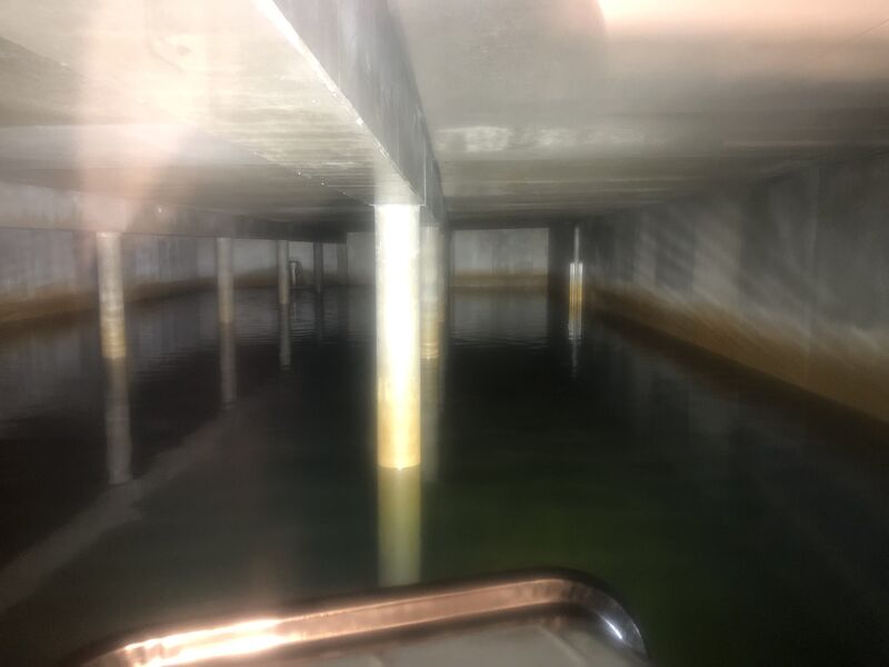 Der letzte Schritt der Aufbereitung besteht darin, das fertige Trinkwasser in große Speicherbehälter zu leiten, die insgesamt ein Fassungsvermögen von 5.200 Kubikmetern haben. Diese Reinwasserbehälter sichern die kontinuierliche Versorgung des Leitungsnetzes im Einzugsgebiet, das über Druckwindkessel mit einem konstanten Wasserdruck von etwa 6 Bar versorgt wird – etwa dreimal so viel wie der Luftdruck eines Autoreifens.