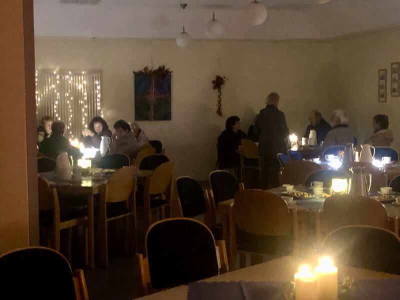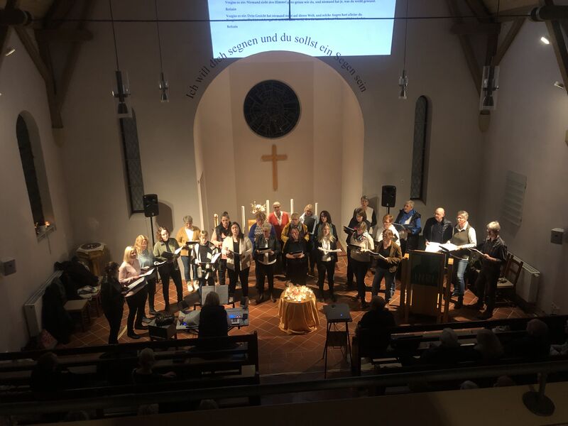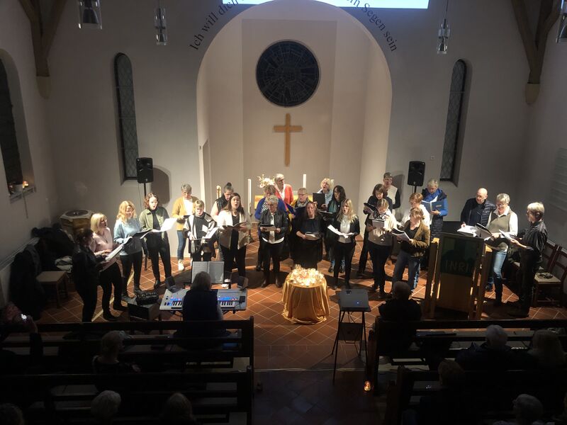 Der Chor Canamus unter Leitung von Christa Zishiri lud zum offenen Singen ein und füllte die voll besetzte Kirche mit stimmungsvollen Klängen. Unter sanftem Kerzenschein stimmte der Chor gemeinsam Lieder an und viele stimmten mit ein und ließen die Kirche so zu einem besonderen Erlebnisort werden. „Für Leib und Seele“ wurde rundum gesorgt: Vor dem Gemeindehaus bereiteten Jugendliche im Iss-Was-Wagen frische Pommes zu, und auf dem Grill brutzelten Bratwürste. Frisch gezapftes Bier, Glühwein und alkoholfreier Kinderpunsch waren ebenso im Angebot wie Kaffee und Tee im festlich geschmückten Gemeindehaus.