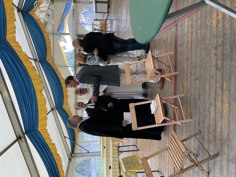 Langholt. Mit einem ökumenischen Zeltgottesdienst wurde am 16. Juni auf dem Gelände des SCR der 705. Geburtstag der Gemeinde Langholt gefeiert. Die aufgestellten Stühle reichten zunächst nicht aus, um allen Gottesdienstbesuchern einen Platz zu bieten. Auf den dann noch eilends herbeigeholten Stühlen fanden schließlich alle ca. 150 Gäste Platz. Zu den Gästen gehörten auch Landrat Matthias Groote und der Bürgermeister der Gemeinde Rhauderfehn, Geert Müller.