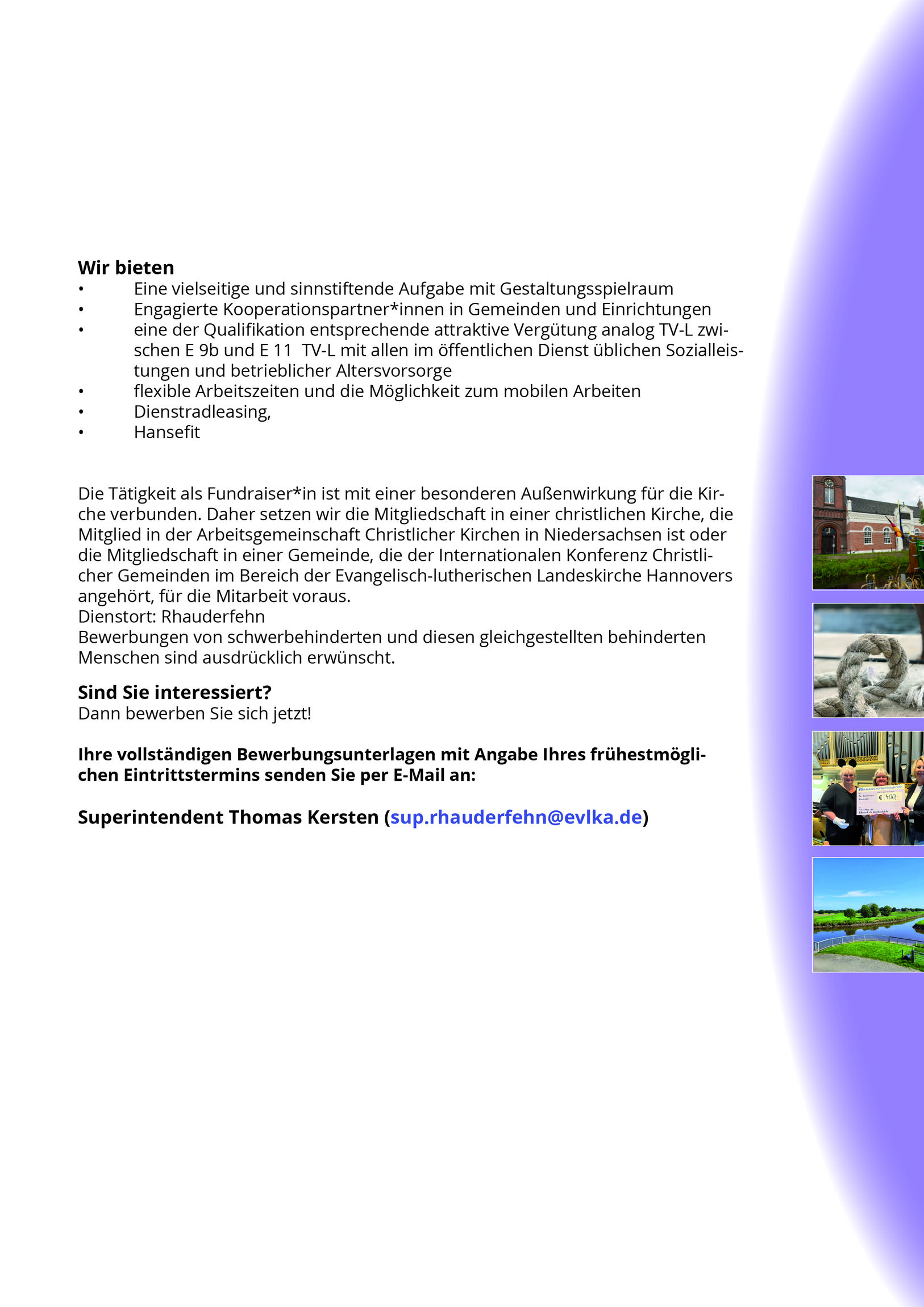 Der Ev.-luth. Kirchenkreis Rhauderfehn sucht zum nächstmöglichen Zeitpunkt eine/n