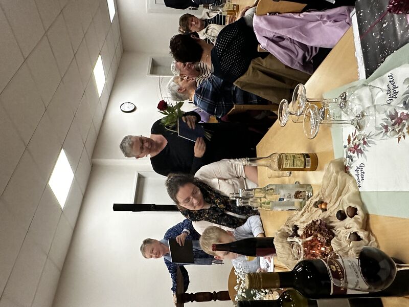 Im Anschluss an den Gottesdienst wurde im Gemeindehaus zu einem gemütlichen Beisammensein bei Wein und Käse eingeladen.