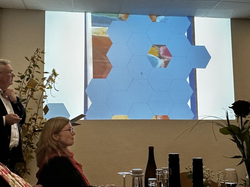 Über Renate: „Du warst nicht nur mit Fachwissen und Geduld präsent, sondern auch mit Kreativität, Tiefe und Farbe, wie es auch deine Leidenschaft zum Malen braucht. Das hat deine Arbeit besonders gemacht.“