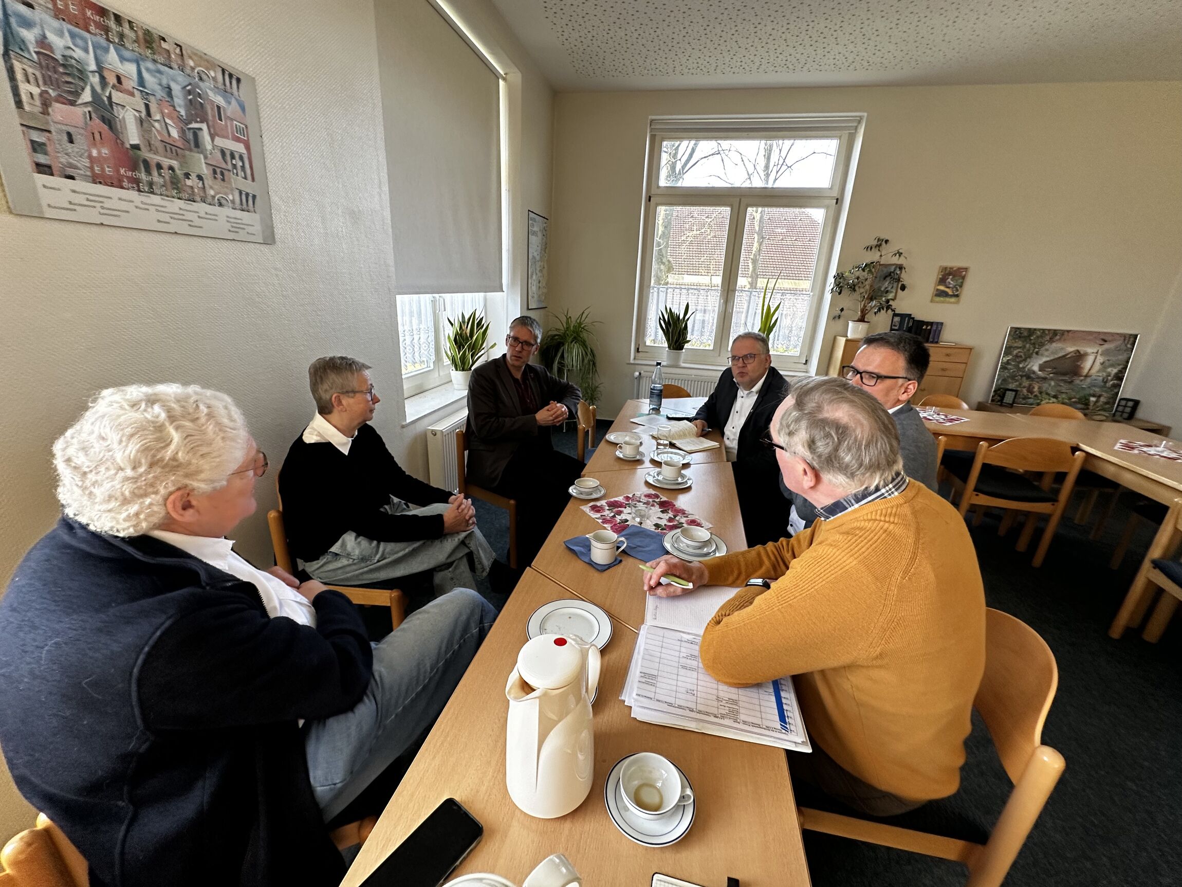 Die Bürgermeister Sap und Abbas betonten die Bedeutung von Sichtbarkeit und gesellschaftlicher Relevanz der Kirchengemeinden. Gerade in dörflichen Strukturen und kleineren Sozialräumen könne Kirche Menschen oft direkter erreichen als in größeren Städten. Gleichzeitig stellten die Bürgermeister aber auch fest, dass kirchliche Strukturen deutlich über den Bedarfen einer Kirchengemeinde liegen. Beide signalisierten Gesprächsbereitschaft über die Entwicklung ihrer Kommunen mit der Kirchengemeinde im Gespräch bleiben zu wollen.