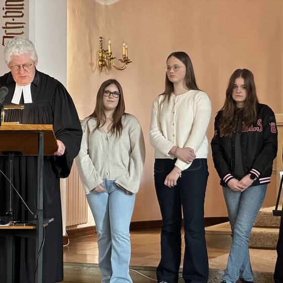 Pastor Bernd Passage griff diesen Gedanken in seiner Predigt auf, und Superintendent Thomas Kersten lobte die Konfis für ihre starke Präsentation und ihren Mut, ihre Ergebnisse vorzustellen.