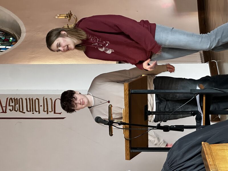 Die Jugendlichen zeigten der Gemeinde, wie sich im Film ein Mensch von Hass und Fremdenfeindlichkeit hin zu Mitgefühl und Nächstenliebe verändert. Passend dazu erinnerten sie an den Bibelvers: „Du sollst deinen Nächsten lieben wie dich selbst" (3. Mose 19,18).