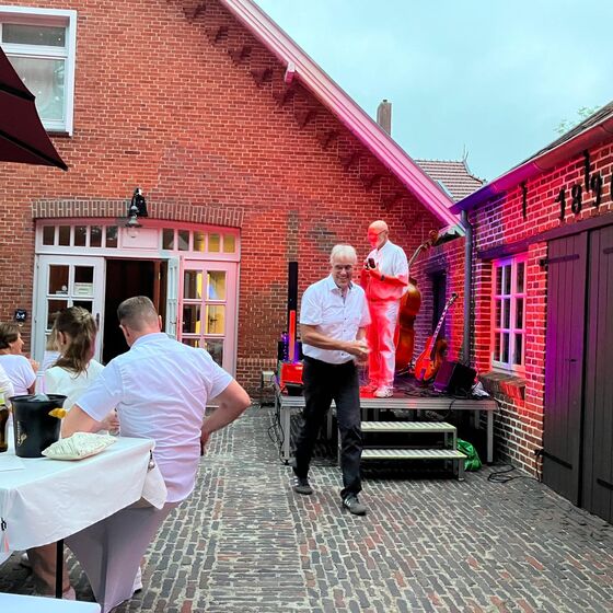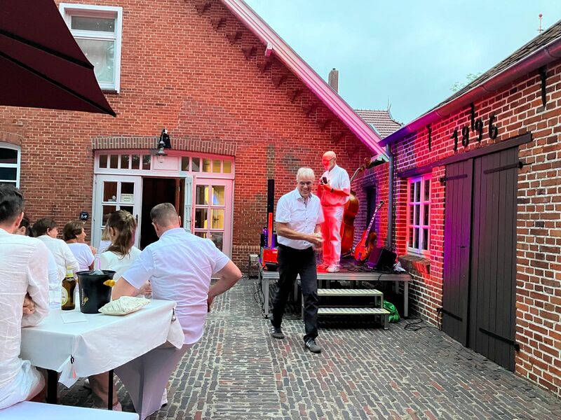 An langen, liebevoll geschmückten Tafeln wurde gelacht, erzählt und miteinander gefeiert. Für kulinarische Vielfalt sorgte Stefan Janssen mit seinem Partyservice aus Idafehn, der die Gäste mit einem vielfältigen Grillbüffet verwöhnte. Dazu passten die feinen Getränke vom Holter Wienkeller, die von fünf freundlichen Servicekräften unter der Leitung von Petra Prins aufmerksam serviert wurden.