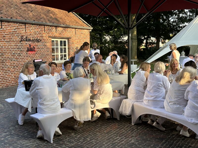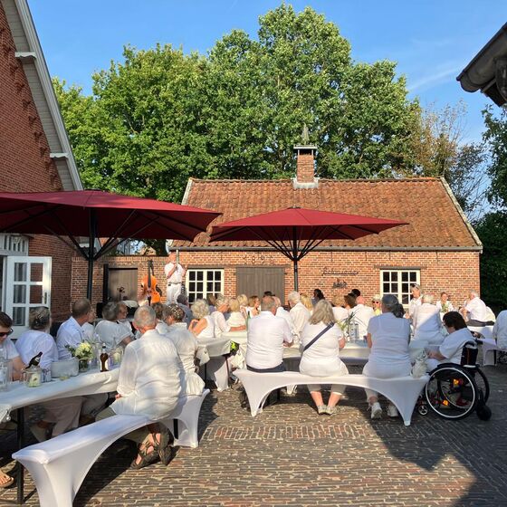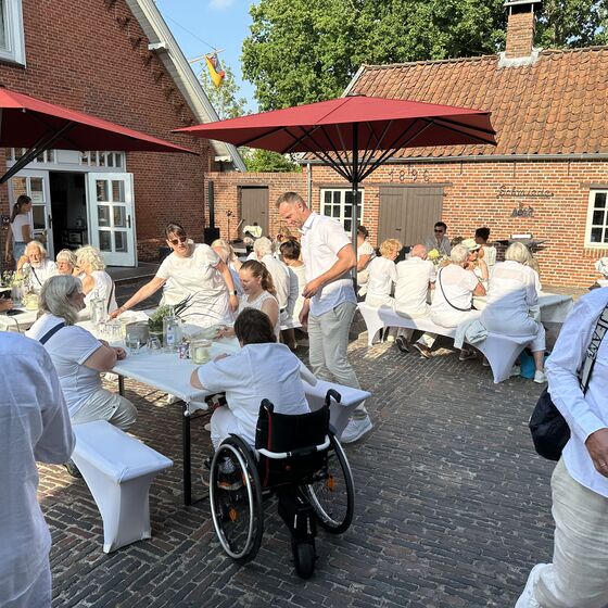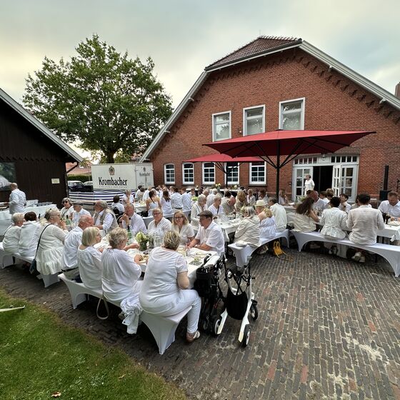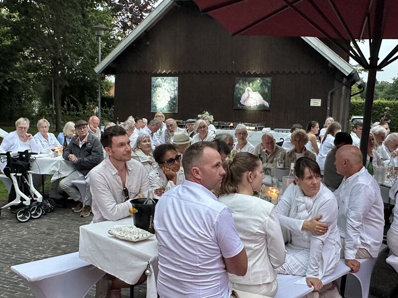 Rhauderfehn. Ein warmer, lauer Sommerabend, weiße Tischtücher im Garten des Fehn- und Schiffahrtsmuseums, mehr als 80 Gäste in eleganter weißer Kleidung – schon beim Ankommen lag ein Hauch von festlicher Leichtigkeit in der Luft. Das White Dinner, organisiert aus Anlass des 10 jährigen Bestehens des Vereins rückenwind, verwandelte den Museumsgarten in eine kleine Oase der Begegnung und des Genusses.