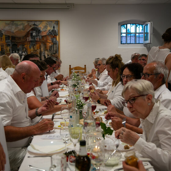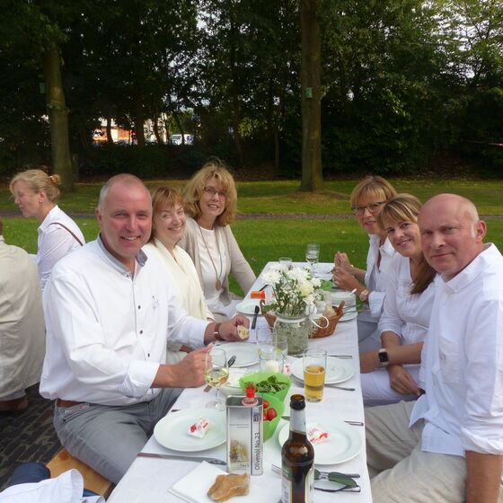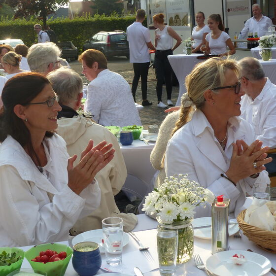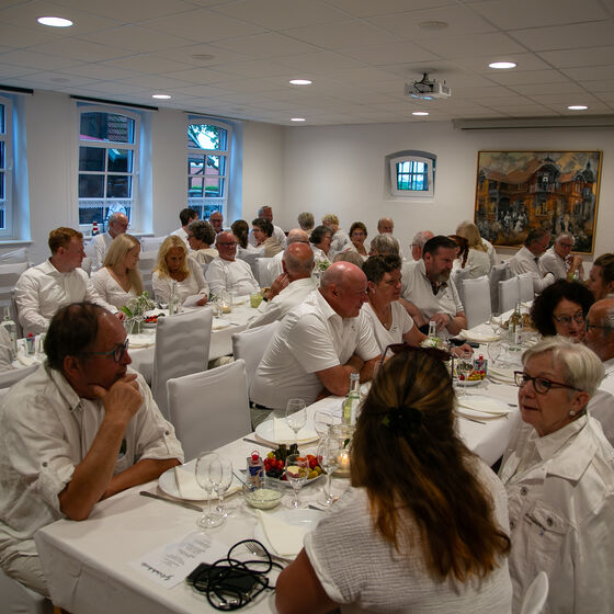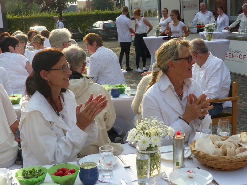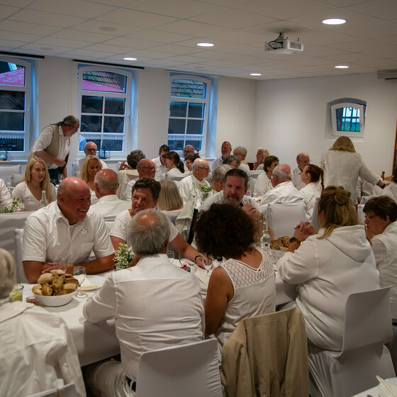 Alle Gäste kommen in weißer Kleidung, alle Tische sind liebevoll in weiß eingedeckt, anspruchsvolle akustische Livemusik ertönt aus dem Hintergrund und Getränke (vom Holter Wienkeller) und Speisen (Grillbüffet von der Zerlegebude) stehen für die Gäste bereit.