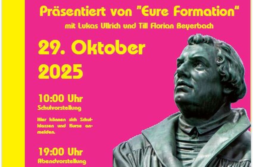 Am Mittwoch, dem 29. Oktober 2025, laden „Aurich zeigt Gesicht“ und die Arbeitsstelle Religionspädagogik Ostfriesland (ARO) zur Aufführung des Stücks „Play Luther“ mit dem Theaterteam „EURE ...