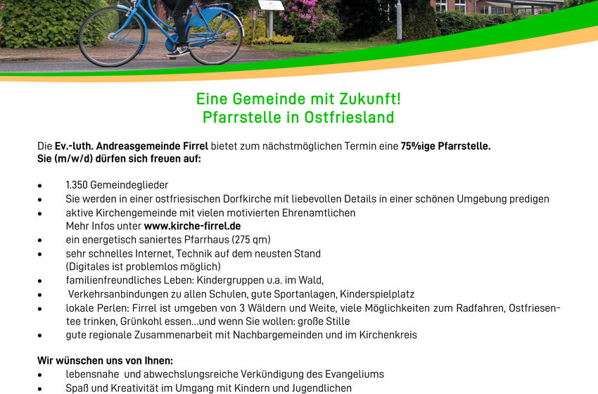 Flachsmeer. Am Sonntag den 23.3.2025 fand in Flachsmeer der feierliche Abschlussgottesdienst der Visitationswoche statt. Gemeinsam mit Pastorin Utta Dittmar und dem Chor „Grenzenlos“, unter der ...
