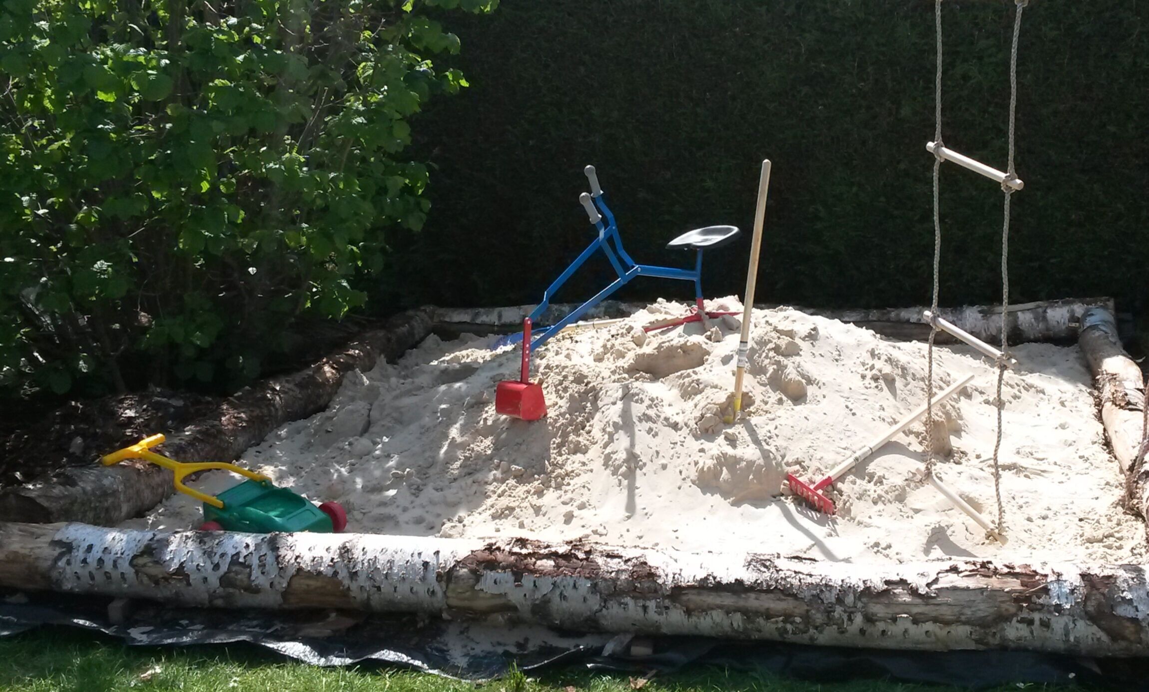 Also mussten zwei bis drei Anhänger voll Bausand in unseren Garten verfrachtet werden. Ein großer Sandhaufen entstand im hinteren Teil unseres Grundstücks. Im Laufe der Zeit wurde dort so manche Burgenlandschaft gebaut.