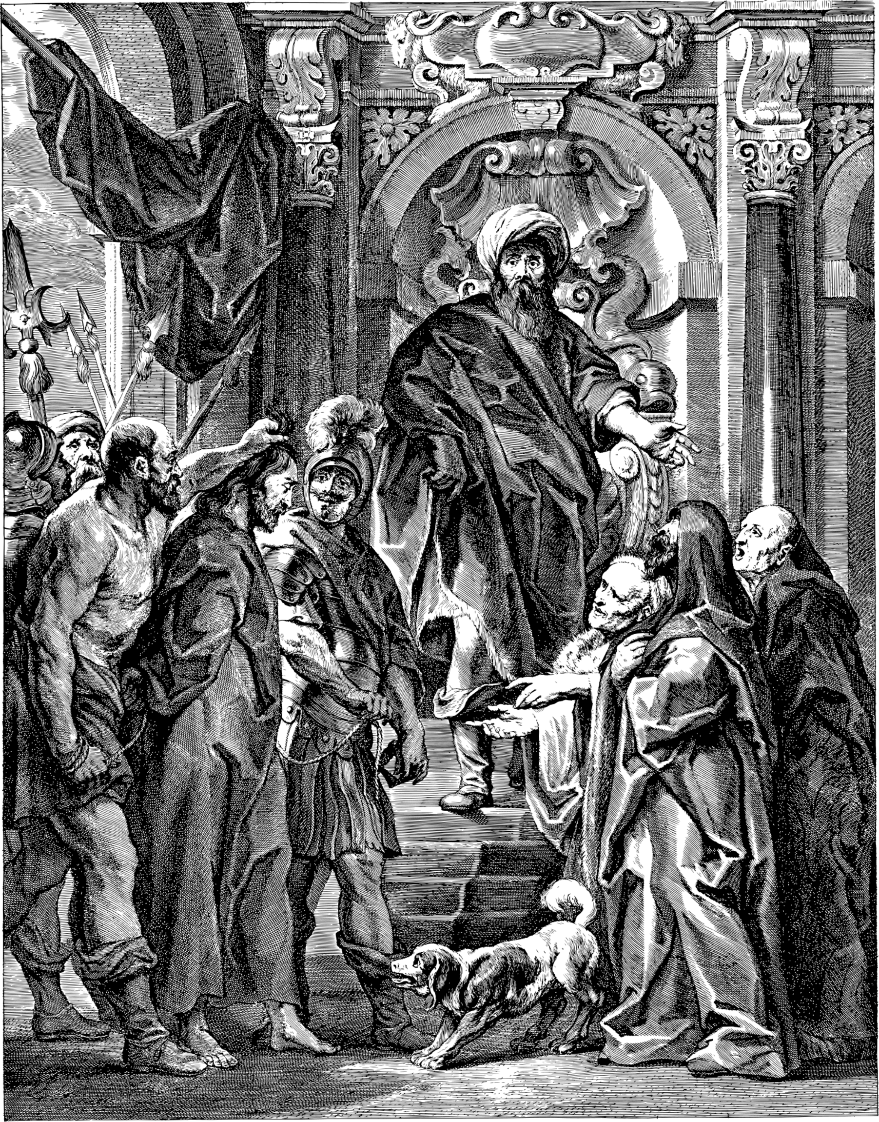 (Sie finden das Verhör vor Pilatus im Johannes-Evangelium, Kapitel 18, Vers 28 bis Kapitel 19, Vers 5)